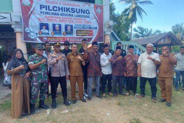 Bersuarakyat.online Aceh Timur- Warga Gampong Bagok Panah Satu, Kecamatan Darul Aman, Kabupaten Aceh Timur, sukses menyelenggarakan Pemilihan Geuchik (Pilkades) pada Senin, 7 Oktober 2025, yang berlangsung tertib dan lancar. Kandidat nomor urut 3.m.jafar.husen, resmi terpilih sebagai Geuchik Gampong Bagok panah sa periode 2025-2031 setelah unggul dalam perolehan suara terbanyak dari total 595 Daftar Pemilih Tetap (DPT). Acara pemilihan yang dipusatkan di halaman Meunasah Gampong Bagok Panah Sa Faisal (ketua panitia pemilihan kades) mengatakan kepada awak media,mencatat kehadiran pemilih yang hadir pada acara pilkades total yang hadir dan mencoblos berjumlah 366 orang Proses pemungutan suara yang dilaksanakan mulai pagi hari Selasa dan dilanjutkan dengan penghitungan suara pada pukul 14.00 WIB. Acara ini turut dihadiri oleh perwakilan Forum Komunikasi Pimpinan Kecamatan (Forkopimcam), antara lain Camat Darul Aman, Kapolsek Darul Aman, Serka Jafrizal Efendi (mewakili Danramil 06/DAM), Babinsa Sertu Nopri Aprizal, dan Bhabinkamtibmas Ibda Eka Saputra. Kehadiran tokoh masyarakat dan aparatur desa,. seperti Faisal, S.E. dan Hasan Basri, juga menambah khidmat suasana. Hasil Penghitungan Suara Berdasarkan hasil penghitungan suara, dari total 595 DPT, hasil perolehan suara mencatatkan: Kandidat nomor urut 1, Rustam: 22 Suara JUMLAH SUARA Kandidat nomor urut 2, Abubakar: 158 suara Kandidat nomor urut 3, M. Jafar Husen: suara.182 Jumlah suara sah tercatat JUMLAH SUARA SAH suara 382, dan suara rusak sebanyak ..suara. Tingkat partisipasi pemilih tercatat tinggi, dengan hanya120 pemilih tetap yang tidak hadir. Juga di karenakan sakit dan di luar negeri. dari pantowan awak media terlihat keramonisa juga keakraban Warga bersama korfopimcam darul aman beserta jajaran Kanit sosial Kapolres Aceh Timur juga hadir terlihat akrab bersama masyarakat dan prangkat beserta beberapa Tuha 4 Gampon