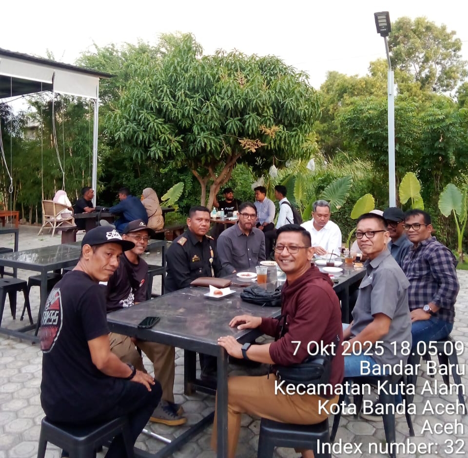 Dalam momen santai tersebut, mereka tampak berdiskusi ringan sembari menikmati sajian kopi khas Aceh. Meski berlangsung dalam suasana informal, pertemuan ini menjadi ajang silaturahmi yang sarat makna, membahas berbagai isu aktual yang tengah berkembang di Aceh, mulai dari dinamika politik lokal hingga komitmen terhadap penegakan hukum dan pemberantasan korupsi.