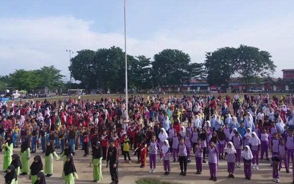 Bersuarakyat.online Pagi yang cerah di Lapangan SBBK Kotapinang terasa berbeda, Minggu (26/10/2025). Alunan musik energik menggema, mengiringi langkah-langkah ceria ratusan siswa-siswi SD yang berbaris rapi. Dengan seragam olahraga penuh warna, mereka bergerak lincah mengikuti irama tertawa, bersemangat, dan menularkan aura positif kepada siapa pun yang melihat. Di tengah keceriaan itu, tampak Ketua Dharma Wanita Persatuan (DWP) Kabupaten Labuhanbatu Selatan), Ny. dr. Dwi Kartika Sari Reza Pahlevi, yang hadir mewakili Bunda PAUD Labusel, Ny. Indah Fery Simatupang, memimpin kegiatan “Senam Sehat, Semangat Hebat” bersama para pelajar dan masyarakat. Kegiatan ini bukan sekadar olahraga pagi. Di balik gerakan sederhana itu tersimpan pesan besar: hidup sehat adalah langkah awal menuju generasi unggul. “Senam ini bukan hanya soal gerak tubuh, tapi gerak hati mengajarkan anak-anak arti kebersamaan, disiplin, dan semangat positif sejak dini,” ujar Ny. dr. Dwi Kartika Sari Reza Pahlevi dengan senyum semangat. Sinar matahari yang hangat berpadu dengan semangat anak-anak yang membara. Mereka menari bersama, menepuk tangan, melompat, dan tertawa lepas seolah energi kebahagiaan pagi itu menyatu dalam satu irama: irama hidup sehat. Kegiatan ini juga menjadi ajakan nyata dari Bunda PAUD Labusel kepada masyarakat untuk menjadikan kebugaran sebagai gaya hidup. Sebab, membangun generasi emas bukan hanya tentang kecerdasan intelektual, tapi juga kesehatan jasmani dan kekuatan mental. Gerakan kecil seperti senam, jika dilakukan bersama dan dengan semangat, dapat menularkan energi positif yang luar biasa. Dari anak-anak hingga orang tua, dari sekolah hingga rumah semua bisa memulai perubahan menuju hidup sehat dan bahagia. Di akhir kegiatan, semangat para peserta belum surut. Mereka bersorak gembira, menandai berakhirnya acara yang tak hanya menyegarkan tubuh, tapi juga menumbuhkan harapan. Karena dari Lapangan SBBK pagi itu, tersampaikan satu pesan sederhana tapi kuat: “Labusel sehat, Labusel kuat, Labusel hebat!”