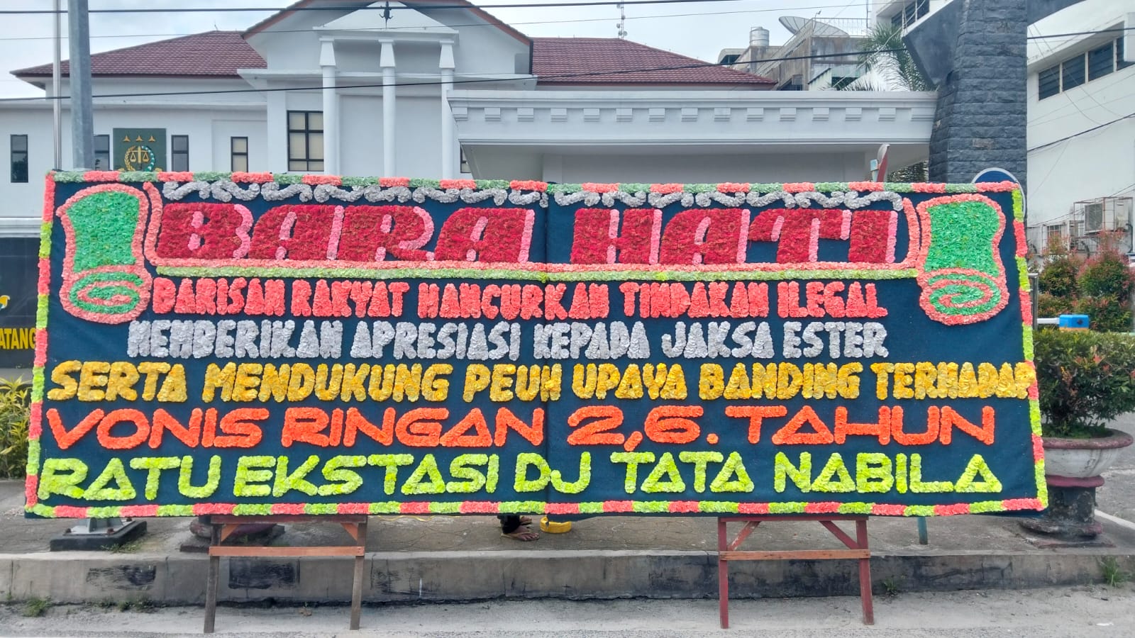 Dalam papan bunga yang dikirim ke Kejari, tertulis pesan tegas: