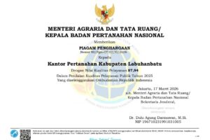 Bersuarakyat.online Labuhanbatu – Kementerian Agraria dan Tata Ruang/Badan Pertanahan Nasional melalui Kantor Pertanahan Kabupaten Labuhanbatu menunjukkan komitmennya dalam memberikan pelayanan terbaik kepada masyarakat, meskipun berada di tengah periode libur. Pada 23 Maret 2026, Kantor Pertanahan Kabupaten Labuhanbatu melaksanakan kegiatan Pelayanan Pertanahan Terbatas dalam rangka Pelayanan Mudik. Program ini menjadi wujud kehadiran negara untuk memastikan kebutuhan masyarakat di bidang pertanahan tetap terpenuhi, khususnya bagi warga yang pulang ke kampung halaman. Melalui layanan tersebut, masyarakat tetap dapat mengakses berbagai keperluan pertanahan, mulai dari memperoleh informasi, melakukan pengajuan berkas, hingga mengambil produk layanan yang telah selesai diproses. Hal ini menunjukkan bahwa pelayanan publik tetap berjalan secara adaptif dan responsif terhadap kebutuhan masyarakat. Kantor Pertanahan Kabupaten Labuhanbatu juga mengimbau masyarakat untuk memanfaatkan layanan ini dengan sebaik-baiknya, terutama selama momen mudik. Warga diharapkan telah mempersiapkan dokumen yang dibutuhkan agar proses pelayanan dapat berjalan lancar tanpa hambatan. Ke depan, Kantor Pertanahan Kabupaten Labuhanbatu menegaskan komitmennya untuk terus menghadirkan pelayanan yang profesional, transparan, dan akuntabel, guna memberikan kepastian hukum atas tanah bagi seluruh masyarakat.