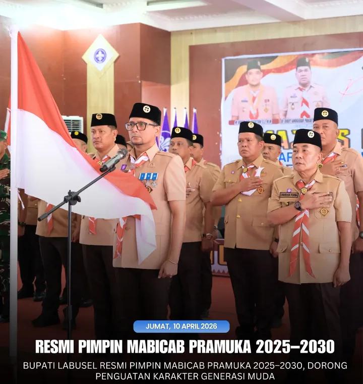 Bupati Labuhanbatu Selatan, Fery Sahputra Simatupang, resmi dilantik sebagai Ketua Majelis Pembimbing Cabang (Mabicab) Gerakan Pramuka Kabupaten Labuhanbatu Selatan masa bakti 2025–2030. Pelantikan tersebut dirangkai dengan pengukuhan pengurus Kwartir Cabang (Kwarcab) serta Lembaga Pemeriksa Keuangan (LPK) Kwarcab, yang berlangsung di Aula Santun Berkata Bijak Berkarya (SBBK), Kotapinang, Jumat (10/4/2026).